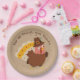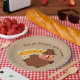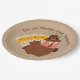 Niedlicher Truthahn mit Pilgerhut auf strukturiertem braunem Hintergrund mit Erntedank Zitat.