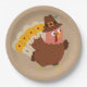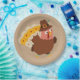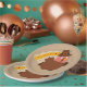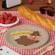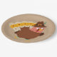 Niedlicher Truthahn mit Pilgermütze auf texturiertem braunem Hintergrund.