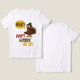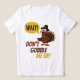 Dieser Erntedank Türkei T - Shirt verfügt über einen Cartoon Truthahn in voller Panik, komplett mit Pilgerhut und Sprechblase.