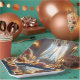 Ein Erntedank wird auf einem elegant dekorierten Tisch serviert, der von sanfter Kerzenlicht erhellt wird.