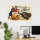 Erntedank Vintage Karte mit Kindern spielen mit einem Kürbis und Truthahn Poster.