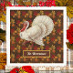 Dieses Design zeichnet sich durch ein weißes Erntedank Truthühner Set gegen ein Blatt Muster in klassischen Herbstfarben Rot, Gold und Braun. Ihr Name erscheint unten in Creme Skript auf einem Farbblock von Autum braun. Dieses klassische Aussehen sorgt für eine festliche Atmosphäre für Erntedank oder Herbsternte für Sie und Ihre Familie oder Gäste.