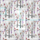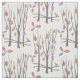 Hübsche Winterbäume gemusterter Stoff mit schneeweißem Hintergrund, graubraunen Bäumen und rosa, lila und orangefarbene Blätter. Ideal für Erntedank Nähprojekte und Geschenke für Winter und Herbst / Herbst. Originelles Design von Sarah Trett.