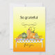 Senden Sie Ihren Erntedank oder Familienmitgliedern herzliche Wünsche mit einem personalisierten Text, der auf Vorder- und Rückseite editierbar ist. Wasserfarbiges Bild von Gourds und Kürbissen mit einem grünen, auf einem weißen Tisch gehauenen Laub. Die sonnigen Orangen- und Gelbgradientenhintergründe sind Sets.
