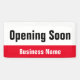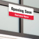 Dieses Outdoor-Banner ist hell rot, schwarz und weiß. Sie können den Text nach Ihren Wünschen bearbeiten. Sie können Ihre benutzerdefinierte Meldung hinzufügen (angezeigt: Bald geöffneter Geschäftsname). Die Oberseite ist weiß mit schwarzem Text. Der untere Teil ist hell rot mit weißem Text für Ihre Telefonnummer oder benutzerdefinierten Text. Alle Texte können bearbeitet oder gelöscht werden.