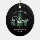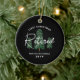 First Remüde Weihnachten Elegant Evergreen Tree Keramik Ornament ist modern gestaltet mit einem anpassbaren schwarzen Hintergrund. Der Text ist "Erste Weihnachtsmüde" in weißen minimalen Buchstaben mit trendigen handgeschriebenen Skripten gemischt. Der Name und das benutzerdefinierte Jahr befinden sich in der unteren Mitte. Drei immergrüne Winterbäume stehen in der Mitte und wurden aus persönlicher Kunst geschaffen. KLICKEN SIE AUF VORLAGENOPTION PERSONALISIEREN UND GEBEN SIE NAMEN UND JAHR EIN.