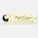 Eine Silhouette einer Fee, die auf dem Mond sitzt und von Sternen umgeben ist. Die Adresse und der Titel der Shop-Website sind in schwarz gedruckt. Die Hintergrundfarbe des Autoaufklebers ist weich gelb.