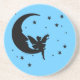 Eine Silhouette einer Fee, die auf dem Mond sitzt und von Sternen umgeben ist. Die Bilddatei hat keinen Hintergrund, sodass Sie den Hintergrund beliebig farbig haben können.
