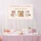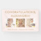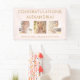 Dieses einfache, sagt moderne Fahne Glückwünsche zum Absolventen, mit Raum für drei der Fotos des Absolvent in einem horizontalen Fotogitter. Erscheint mutiges Gold farbiger Text auf trendy, erröten rosa Hintergrund für einen stilvollen Blick, der sicher ist, an Ihrem Abschluss-Party bemerkt zu werden und genossen zu werden.