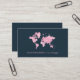 Erröten rosa Aquarell-Weltkarte auf Marine-Blau Visitenkarte
