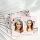 Diese trendy und elegante Abschluss-Party Einladung kennzeichnet ein Weiche erröten rosa Hintergrund mit zwei geometrischen Formen, die Ihre eigenen Fotos enthalten, und Raum für Ihr Klassenjahr und -namen. Die Einladung wird auch mit schönen Rosa und Pfirsich Watercolor-Rosen und Losen von des Grünem und Blau-Blätter und -laubs verziert. Die Rückseite der Karte enthält einen zusammenpassenden Watercolor Wreath und Raum für alle die Ihre Partyinformationen für Ihre Gäste.