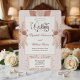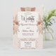 Rötliche und staubige roséfarbene Aquarellflorals mit einem falschen roségoldenen Sonnenstrahlakzent erzeugen eine weiche, romantische Gartenaesthetic, die für Frühlings- und Sommerhochzeitsfeiern geeignet ist. Das Layout folgt der traditionellen Struktur formeller Hochzeitsstationery mit einer zentrierten Typografiehierarchie, die von einem dünnen Doppelstrichrand und symmetrischen Blumenclustern gerahmt wird. Aquarellrosen und Hortensienblüten erscheinen in rosafarbenen, staubigen Rosen-, Pfirsich- und Cremetönen, begleitet von zarten Blättern, Beeren und Pampasgräsern, die eine ausgewogene botanische Komposition erzeugen. Ein dekoratives, falsches roségoldenes Sonnenstrahlelement am oberen Ende führt einen subtilen Art Deco-Einfluss ein und verankert visuell die elegante Kalligrafie-Schlagzeile, die mit
