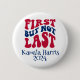 Zeigen Sie mit diesem stilvollen Button-Back-Button Ihre Unterstützung für die erste schwarz-asiatische Präsidentschaftskandidatin! "Erst aber nicht zuletzt, Kamala Harris 2024" Text in patriotischem rot-blauen Retrostil.