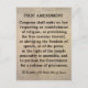 Hier ist eine einfache Möglichkeit, Ihre Senatoren, Kongressabgeordneten und andere Gesetzgeber zu kontaktieren. Die erste Änderung der Grundrechtecharta der US-Verfassung, auf einer Postkarte gedruckt. Auf der Rückseite, Raum für Sie, um einen Kommentar zu senden, eine Adresse hinzufügen, und senden Sie diese Karte aus, um Ihre Vertreter lassen, genau wissen, wo Sie stehen. Wir haben alle 10 Änderungsanträge zur Grundrechtecharta sowie die Unabhängigkeitserklärung und mehr in unserem Shop. Kaufen Sie in loser Schüttung für große Preise, und haben ein Postcard-Party schreiben. Es ist ein einfacher Weg, sich zu engagieren, und wir alle müssen jetzt involviert sein.