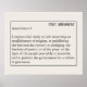 Text: Der Änderungsantrag I des Kongresses enthält kein Gesetz, das eine Niederlassung der Religion oder ihr Verbot der freien Ausübung, die Einschränkung der Redefreiheit oder der Pressefreiheit oder das Recht der friedlich versammelten Menschen, sich zu versammeln, und die Regierung um eine Wiedergutmachung von Beschwerden ersucht. Designbeschreibung: Text des Ersten Zusatzes der Verfassung der Vereinigten Staaten, gerahmt in einem schwarz-weißen Rechteck. Anpassbare Hintergrundfarbe und Schriftart.
