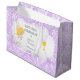 Erste Kommunion Blonde Hair Girl Danke, dass Sie Geschenktasche, um Ihre Gäste nach der Zeremonie mit einem Lila Damaskusmuster präsentieren. Der gesamte Text kann so geändert werden, dass er Ihren eigenen Anforderungen Anzug. Grafiken von BlackCatsMedia und Zenwaredesigns.
