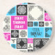 Ein kühner, gemusterter SandsteinUntersetzer mit einer lustigen Aufnahme für Tee- oder Kaffeefreunde. Verwenden Sie "Diese Vorlage personalisieren", um den Text "Erste Dinge - Erste Teepause!" zu ändern, falls gewünscht. Belebt mit dekorativen Fliesen verschiedener Größe und abwechslungsreichen Mustern. Schwarz-Weiß-Designs auf magenta, blau, schwarz und cremefarben Hintergrund. Alle Muster wurden von mir entworfen und gezeichnet und sind durch keltisches und islamisches Design inspiriert.