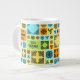 Eine kühne, gemusterte Tasse mit einer lustigen Unterschrift für einen Tee- oder Kaffeeliebhaber. Verwenden Sie "Diese Vorlage personalisieren", um den Text "Erste Dinge - Erste Teepause!" zu ändern, falls gewünscht. Belebt mit dekorativen Fliesen verschiedener Größe und abwechslungsreichen Mustern. Schwarze Designs mit verblasstem orangefarbenem, grünem, blauem und gelbem Hintergrund. Alle Muster wurden von mir entworfen und gezeichnet und sind durch keltisches und islamisches Design inspiriert.