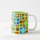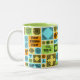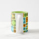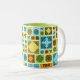 Eine kühne, gemusterte Tasse mit einer lustigen Aufnahme für Tee- oder Kaffeefreunde. Verwenden Sie "Diese Vorlage personalisieren", um den Text "Erste Dinge - Erste Teepause!" zu ändern, falls gewünscht. Belebt mit dekorativen Fliesen verschiedener Größe und abwechslungsreichen Mustern. Schwarze Designs mit verblasstem orangefarbenem, grünem, blauem und gelbem Hintergrund. Alle Muster wurden von mir entworfen und gezeichnet und sind durch keltisches und islamisches Design inspiriert.