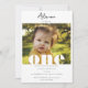 Eine wunderschöne Party Einladung zum 1. Geburtstag mit eigenem Foto und Text. Ein moderner Bogen umrahmt Ihr wunderschönes Foto und schafft eine zeitgenössische stilvolle Einladung zum ersten Geburtstag. Passen Sie das Geburtstagsalter "eins" auf das Geburtstagsalter an und schaffen Sie eine zeitlose Geburtstagsparty, die für einen Jungen oder ein Mädchen einlädt.