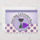 Erste Heilige Kommunion Einladungen in lila und cremefarbene Polka-Punkte mit schwarzer Chalice, Wirt und Trauben-Design. "Mit dem Heiligen Geist gefüllt". Einladungen können auf der Rückseite individuell eingestellt werden.