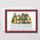 Watercolor Waldtiere Erstgeburtstag Einladung. Zu den Kleinkindern zählen Bären, Hirsch, Elch, Raccoon, Kaninchen, Fox und Eule mit Kiefernbäumen. Kraft Paper Style, Forest Green Pine, Red Buffalo Kariert.