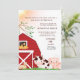 Diese Einladung umfasst eine lebendige rote Scheune mit freundlicher Kuh, Schwein, Hahn und Lamm. Die skurrile Illustration Set die Stimmung für eine lustige und festliche Farm-Thema, die die Fantasie des ersten Geburtstages Ihres Kleinen und Gäste gleichermaßen.