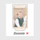 Design zeigt das Foto, das Sie gerahmt durch einen goldfarbenen Rahmen liefern. Die individuell anpassbare Position wird oben in derselben goldenen Farbe angezeigt. Der Name des Kindes und das Datum der ersten Heiligen Kommunion werden unten angezeigt. Der benutzerdefinierte Aufkleber nimmt die Form des Bildes wie gezeigt an. Eine schöne Erinnerung an einen besonderen Tag!