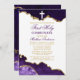 Moderne elegante Wasserfarbe Lila und Goldmarmor Agate Geode Erste Heilige Kommunion Einladung