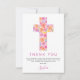 Pastellrosa, Orange und Lila Rose Blume Kreuz botanische Wasserfarbe Religious erste (1.) Heilige Kommunion Dankeschön Karten.