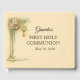 Es handelt sich um ein traditionelles katholisches Bild der Erstheiligen Kommunion mit einem schönen Kalice, Gastgeber und rosa Rosen. Alle Texte und Schriftart können individuell angepasst werden.