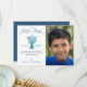 Dieses moderne und elegante 5"" erstes Foto der heiligen Kommunions-x7 danken Ihnen, Eigenschaften zu kardieren ein Chalice, ein Weizen und ein Wirt - Symbole des heiligen Abendmahl. Die Wörter "viel Dank" werden in einen eleganten blauen Schriftart geschrieben. Der Text, das Foto und die Hintergrundfarbe (auf der Rückseite) können zu Ihrem Mögen besonders angefertigt werden. Eine perfekte und einfache Weise, Gästen für das Teilen in der speziellen religiösen Gelegenheit Ihres Sohns zu danken.