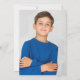Elegante Goldsignatur der Erstheiligen Kommunion Save the Date mit einem eleganten Schriftsignaturnamen auf staubblauem Hintergrund und einem besonderen Foto auf der Rückseite. Personalisieren Sie mit Ihren speziellen Event-Informationen in schicken Schriften. Entwickelt von Thisisnotme©