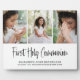 Stilvolle, moderne Collage-Plakette aus Foto. Die erste heilige Kommunion wird in einem ausgeklügelten typografischen Skript mit stilvollen handgeschriebenen Schriften auf weißem Hintergrund vorgestellt. Mit dem Namen, dem Datum, dem Ort der Taufe, ideal als Geschenk oder Sake.
