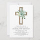 Sage Green Floral Boy's Eukalyptus und Gold Foil Kreuz botanische Greenery Watercolor Religious First (1.) Heilige Kommunion Einladungen.