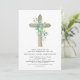 Sage Green Boy's Eukalyptus und Kreuz botanischen Grünen Wasserfarbe Religious erste (1.) Heilige Kommunion Einladungen.