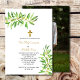 Diese erste elegante, heilige Einladung zeigt ein Foto im Hintergrund mit einem einfachen Olivenzweig. Sie können sich auch mit der passenden Schreibwaren und der passenden Papierartikel abgleichen. Napkins, Teller, Dankeschön-Karten, Babyduschspiele, Willkommensschild, Backdrop Banner und vieles mehr. Siehe Olive Branch themed collection Alles, was Sie brauchen, um ein schlichtes und elegantes Party zu schaffen.