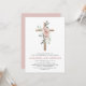Daughter's Dusty Rose Rosa Blüte und Eukalyptus - Kreuz botanische Seite Grüne Wasserfarbe Religiöse erste (1.) Heilige Kommunion Einladungen.