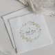 Eine schöne und elegante Cocktail-Serviette aus Papier mit einem farbenfrohen weißen Kranz. Ein kleines, grün grün kreuzendes Kreuz koordiniert sich mit dem Grün. Der Name Ihres Kindes, Erste Heilige Kommunion und Datum folgen. Der gesamte Text kann individuell angepasst werden.