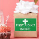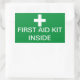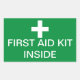 Ein Aufkleber für Erste Hilfe-Kit Inside, um anderen zu signalisieren, wo man das Erste-Hilfe-Kit entweder in einem Büro, einer Schule, einem Zuhause oder einem Auto finden kann.