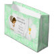 Erste Communion African American Girl Danke, dass Sie Geschenktasche, um Ihre Gäste nach der Zeremonie mit einem grünen Damaskmuster präsentieren. Der gesamte Text kann so geändert werden, dass er Ihren eigenen Anforderungen Anzug. Grafiken von BlackCatsMedia und Zenwaredesigns.