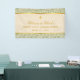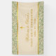 Der Hintergrund ist das Vintage Wallpaper-Muster "Willow Bough", entworfen von William Morris (1834-1896), jetzt im öffentlichen Bereich. Es hat weiche Zweige mit grünen Blätter auf weißem Hintergrund. Der Text ist goldgelb, in einem breiten weißen Streifen (die Farbe des alten Papiers) mit Imitaten goldenen Folienrahmen, und hat ein Imitat Gold kreuzen darüber. Die Meldung "Welcome to [Name]'s" wird in einem eleganten kalligrafischen Skript geschrieben, der Erholung in caps.