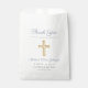 Personalisierte religiöse Cross Blue Boy Erste Kommunion bevorzugen Taschen. Teil der Dusty Blue Script Cross Boy First Communion Suite mit passender Einladung, Schreibwaren und erstem Communion Party Zubehör.