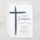 Diese moderne blaue First Communion Einladung besticht durch ein stilvolles Kreuz-Design, das sich perfekt eignet, um diesen besonderen religiösen Meilenstein zu feiern. Das marineblau-blaue Farbschema macht es ideal für die Zeremonie der Ersten Kommunion eines kleinen Jungen. Das schlichte und dennoch raffinierte Design wird die Gäste beeindrucken und den Ton für ein unvergessliches Ereignis Set.