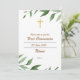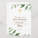Diese Einladungskarte für eine erste Kommunion ist ein Dokument, das die religiöse Zeremonie der ersten Kommunion eines Kindes ankündigt. Sie hat religiöse Motive. Neben dem Satz, der die Personen, an die sie sich richtet, auffordert, diesen Sondertag mit dem Kind und seiner Familie zu begehen, enthält er folgende Informationen, die Sie ergänzen oder ändern müssen: - Name des Kindes, das seine erste Kommunion abgibt - Datum und Uhrzeit der Feier - Anschrift oder Ort der Feier