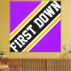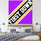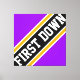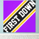 Dieses sportliche Fußball-Design zeichnet sich durch athletischen First DOWN-Text in hervorgehobenen breiten diagonalen schwarzen, weißen und goldgelben Rennstreifen vor hellem lila Hintergrund aus. Die ersten und letzten Buchstaben des Textes laufen von den Designkanten mit einem dynamischen Bannereffekt ab. Die Farben und Texte in diesem Design können personalisiert sein.