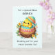 Mit dieser personalisierten Karte können Sie das erste Osterfest Ihrer Nichte bewundern. Freuen Sie sich auf ein köstliches Baby-Küken, das sich von seinem Ei in einem Garten mit bunten Frühlingsblumen befreien kann. Set vor einem beruhigenden pastellfarbenen aquamarinen Hintergrund, das Design strahlt festlichen Beifall. Passen Sie die Vorderseite mit ihrem Namen an und fügen Sie diesem besonderen Gruß eine einzigartige Touch hinzu. Im Inneren erwarten Sie herzliche Wünsche, in der Hoffnung, dass ihr Tag voller Freude, süße Überraschungen und der grenzenlosen Freude, die mit neuen Anfängen kommt. Diese Karte ist eine wunderschöne Art, ihr erstes Ostern zu feiern und bleibende Erinnerungen zu schaffen.