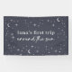 Ein mariner Hintergrund mit Sternen und Mondmustern um die Außenseite. Im Inneren des Designs befindet sich eine Sonnenstrahlen-Kontur mit der Typografie "First Trip around the sun", die den Namen Ihres Kindes enthält. Ideal für Ihre kleine Geburtstagsparty!