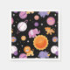 Whimsisches Raummuster mit hübschen Tieren, die im Stil der Serviette gezeichnet werden. Dieses spielerische Design verbindet kosmische Elemente wie Sterne, Planeten und Raketen mit charmanten Tierskizzen und schafft so eine einzigartige und unterhaltsame Ästhetik, die perfekt für die Geburtstagsparty Ihres Kindes geeignet ist.