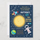 Diese niedliche Einladung bietet einen Astronauten, ein Raketenschiff, Sonne und Sternenhintergrund.